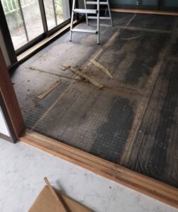 施工前 施工中 施工後 お客様 青梅市 S様 工事内容 和室畳処分、床高さ調整、コンパネ張り、クッションフロア貼り 工事期間 2日間 Post Share 施工事例 内装工事、住宅改修、エアコン取付け、ハウスクリーニング, 青梅市、サイディング、外壁塗装、屋根塗装、ベランダ・屋根防水工事、雨樋交換工事、テラス波板・軒天補修工事、リフォームのワイケー 狭山市でウッドデッキ施工 前の記事 青梅市でリノベーション 次の記事